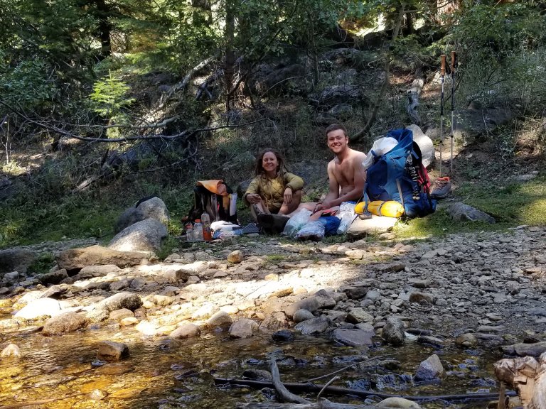 About half way up the climb, we stopped for lunch at a little creek that glittered in the sunlight. We peacefully sat eating and listening to the trickling of the water just a few feet away. I still had half an avocado left, and was really glad for it. I made a tortilla wrap with the avocado and some cheese and finished off the rest of my Smart food popcorn. The little creek was lusciously cold so I couldn’t resist making a small iced coffee for dessert with some dark chocolate. I really did not need the caffeine, which is the complete opposite of what was happening to me on the CT, today I felt totally energized. A lot of that has to do with the lower elevation, the several days of rest and the past two nights getting a full night’s sleep. What a difference! Still, I love my coffee and the icy cold water beckoned me to make a brew. I also hoped it would help me motor up the next 3,000 feet more swiftly, which it did.