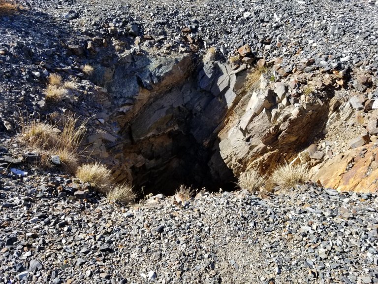 By the time we set off from that lovely spot, it was closing in on 2:45 pm. From there we had to climb Mine Shaft Pass, and descend it to where we are now, which was only about 3 miles from our lunch spot. We headed uphill first to the Sierra Mines where we inspected the old buildings made entirely out of stones stacked on top of one another, now teetering and on the brink of collapse. We stood on the edges of the massively deep holes in the earth, created by humans in desperate search for precious metals. All of this incredibly hard work, all done by hand, and often in harsh conditions, is incredible. People were so hardy then! We read in Roper’s book that these miners lived out here during the winters and built dwellings that had walls 3 feet thick. This was all in the 1800’s, it must have been such a tough life, and yet, they chose to do it at the chance of striking it rich. Now we suffer by choice through harsh conditions like that in pursuit of recreation and hanging on to a hope of being closer to the Divine. Evolution, huh….