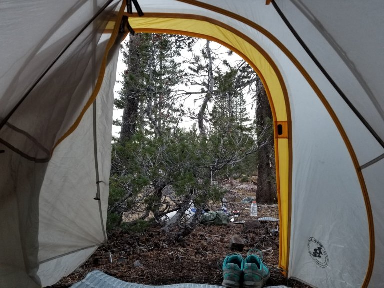 We did make 10 miles today, we were lucky because we had about 4 trail miles right off the bat from Tioga road at Tuolomne Meadows. After splitting off the JMT/PCT we took the Gaylor Lakes Trail which first parallels the creek, which parallels Tioga road for about two miles, then crosses the road and begins an 1,800 foot ascent up to Sierra Mines and Mine Shaft Pass at 10,800 ft.