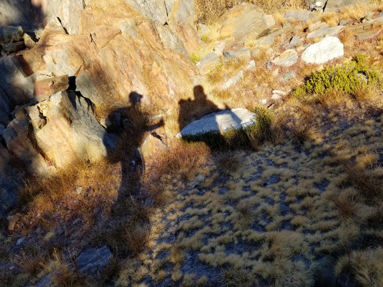 Finally, finally, we made it to some friendlier terrain that contained a less steep grade, some grasses and back to the white granite rock that your shoes stick to and don’t go slipping when you step on them. Hallelujah!
