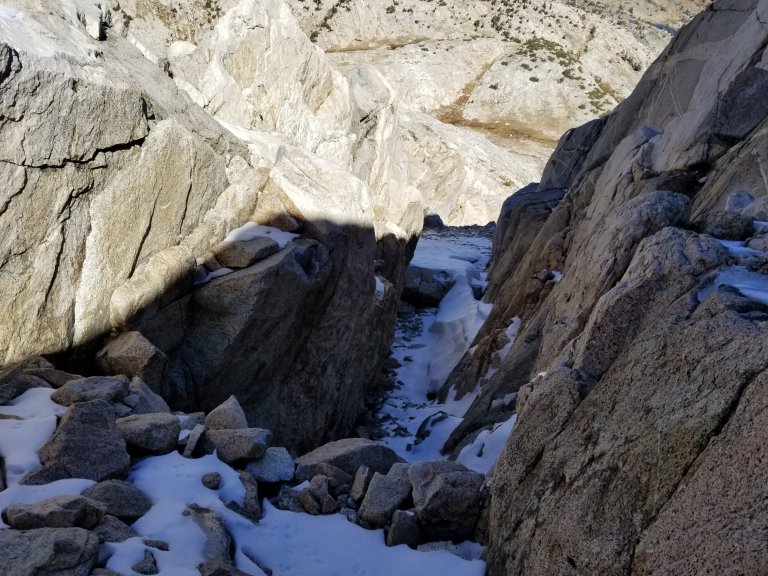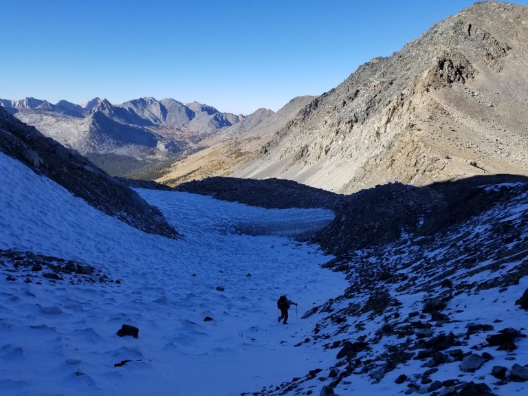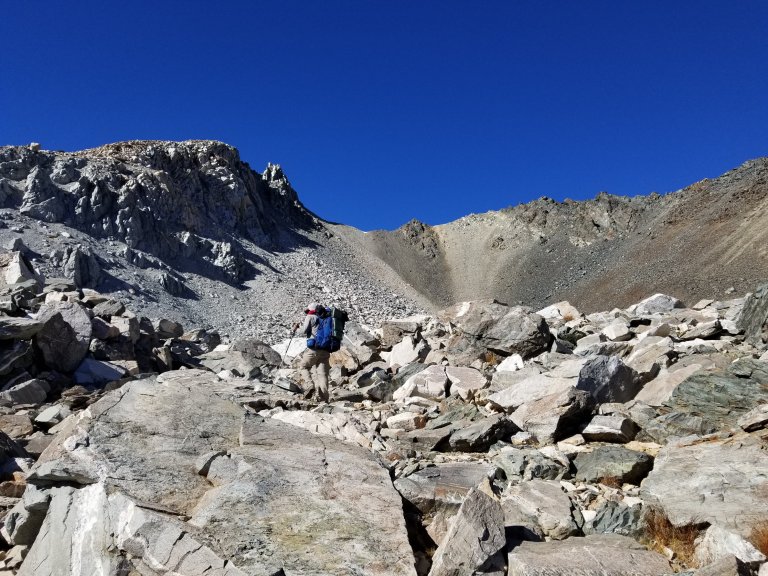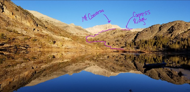 For the most part this helped. For one, when I was forced to wake up in the dark and freezing cold, I embraced it instead of the usual extended lingering. For another, I felt clear in my head all day, I felt like my navigation was on point all morning and I understood where we were headed, and what to expect. We did really well for the first half of the day, making our way up the long climb to the East Ridge of Conness Peak. This ridge, was named East Conness Pass by Doubletap in his notes, as it truly behaves like any other pass.