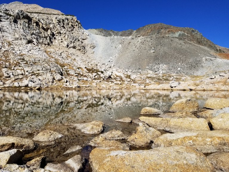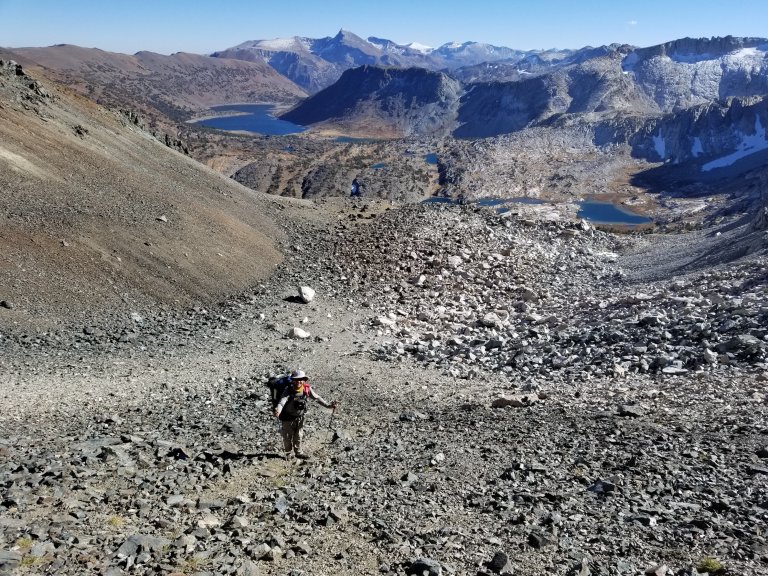 We decided there must be another way, it simply was not safe. We may have gone a little out of the way, but we definitely found our way down without a hitch, and soon we were walking down the North arm of this massive mountain and descending to the Conness Lakes basin.