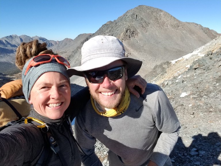 We made our way up the scree, and honestly, the reference materials we had made it sound WAY worse than it actually was. We were both surprised how quickly and not with monumental amounts of effort it was. Are we getting stronger? Maybe we lucked out and found the path of least resistance. We made it to the top of Sky Pilot Col by 3:15 pm, only 45 minutes after we’d departed Secret Lake. This made us both very happy, because it gave us more time to handle the sketchy descent.