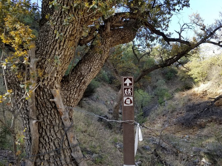 By mile 6 after lunch I hit a wall. I sat on a rock for a few minutes, wanting a real break, but rallied and ate some nuts and told myself just to push to Kentucky camp, just 4 more miles and then take a break. When I finally got there it was 5:15 pm and I veered straight to a water spigot that fortuntely also was attached to an outlet. So, I took off my pack, charged my phone, got water, ate some snacks and stretched. Shortly, Robert the bike packer shows up and cant believe I beat him there! He thinks I’m super fast, but I’m not. I saw a trail register just at the gate to Kentucky camp and saw that Legend signed his name 2 days ago. Now that’s fast!