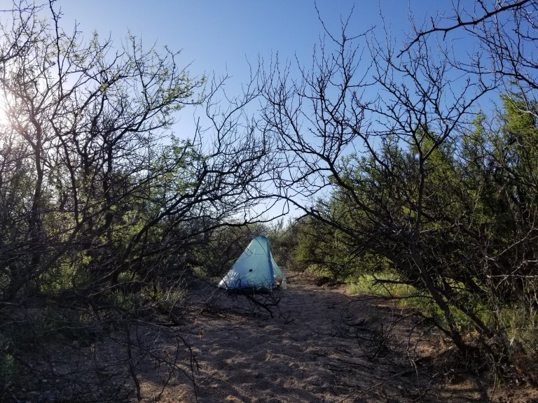 Flyby and I reached the park boundary and found a place where we could pitch our shelters side by side. Tomorrow we have over 6,000ft of climbing to tackle, up and over Mica Mountain. Now, I don’t mind that kind of climb at all, but I just hope my knee can hold up on the downhill, as that is when it really rears up in pain. We talked through our thin tent shelter walls as night settled in and made a plan to start walking early tomorrow morning. We decided to hike together for the next day and a half until we reach Tucson. I am so glad to have a friend!