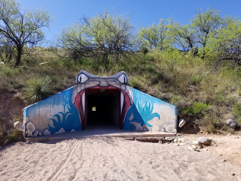 I passed under a Highway in a tunnel that had a giant snake painted on the other side and made it to the Gabe Zimmerman Trailhead in good time. Shortly after arriving, I met three other hikers who were packing up and getting ready to hit the trail. All of them have hiked other long trails before, and are doing a section hike of the AZT as a shake-down to get ready for their PCT and CDT hikes this Summer.