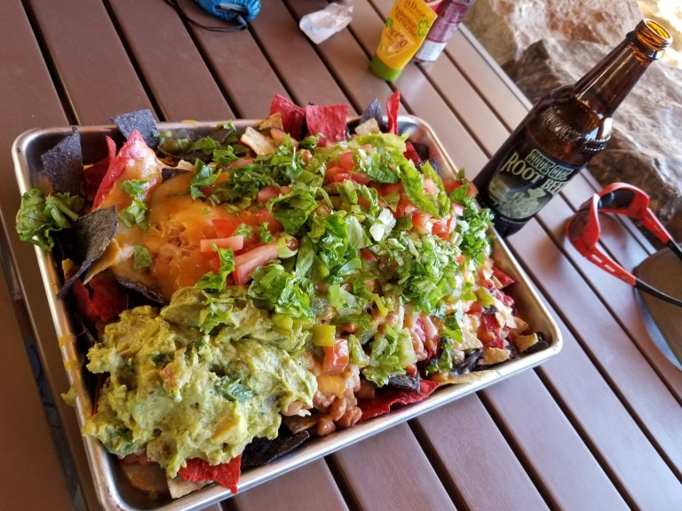 Flyby and I ordered a massive plate of vegetarian nachos and shared it, and I got a real Root Beer. It was all absolutely amazing. We stayed there in the shade for three hours, they even had an extremely well supplied hiker box there in the gift shop. Everyone that worked there was very nice to us and I found myself filled with the nostalgia of past thru-hikes where community and connection enhance the experience exponentially. I was even talking with a day hiker there who was “thinking of thru-hiking the PCT” and reveled in answering all his questions. All this energy, all this nostalgia, the soda, the nachos, friends, it was turning out to be such a great day!