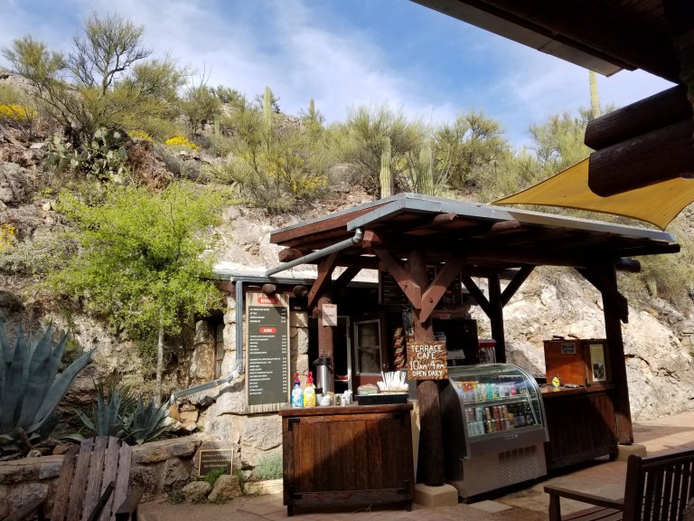 We made it back onto the AZT and finally we made it to the correct side trail that led us to Colossal Cave, and the magical snack bar. We were greeted by three other thru-hikers who were already there gorging themselves. Their names are Red Bass, Wrigley and Pepper. Leave it to us thru-hikers, we will always find places to consume massive amounts of calories!