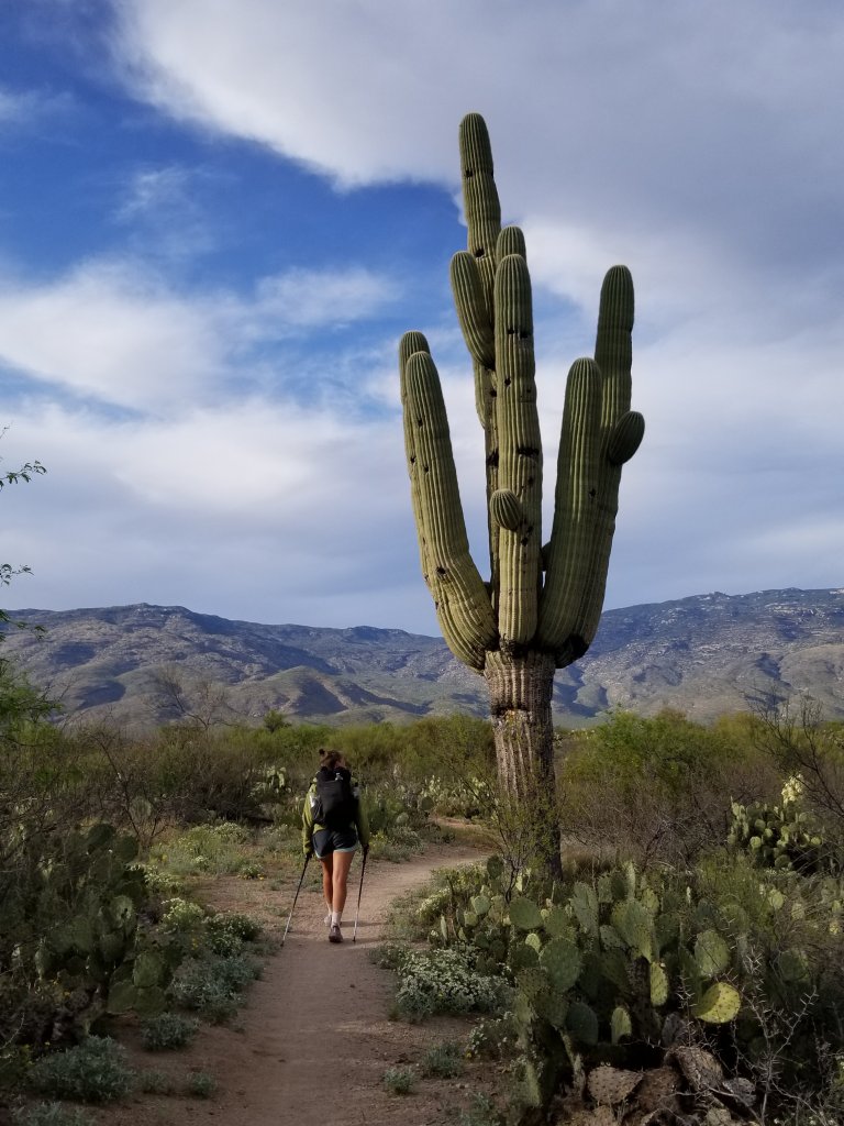 This afternoon’s hike ended up being the most beautiful section I have walked on the AZT as of yet. The terrain is turning into a magical cactus garden filled with Saguaro’s. We saw our first one’s earlier today and we got excited to meet these ancient wise beings, we took pictures for each other and our heart’s fluttered as we knew we were entering a sacred National Park named after this stunning desert tree.
