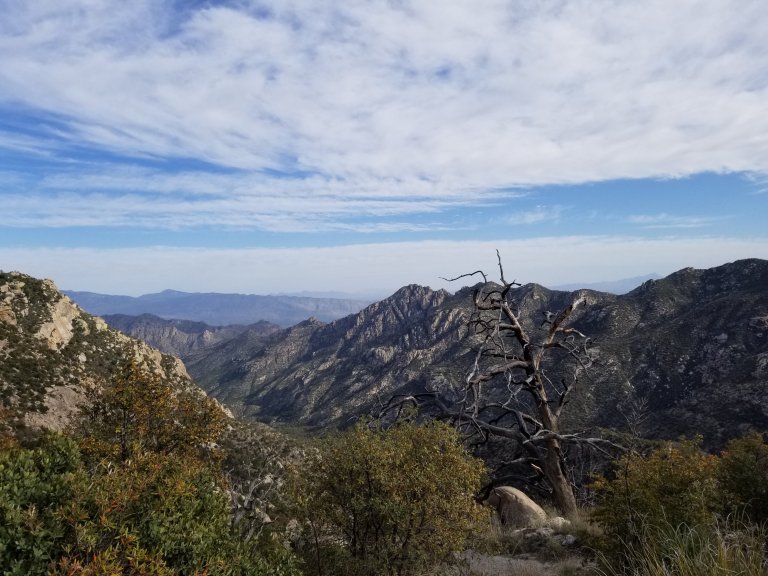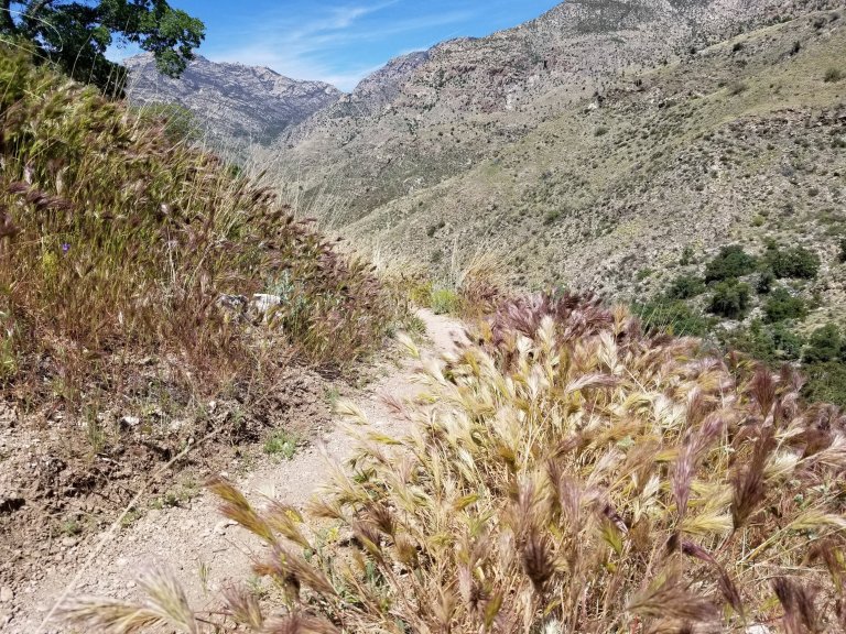 By the morning when I woke, it was 7:50 am, the lastest I’ve slept this entire hike, including in a hotel room, go figure! Today was a bit of an off kilter day because I knew I had this massive climb to tackle, yet I also needed to leave some miles to hike tomorrow morning into Mount Lemmon/Summerhaven. I tried to dilly dally this morning, but I was eager to walk. I’d camped off trail by about .25 mi and had to bushwhack back over to the trail. Definitely glad this trail is not a cross country route, simply because you are often stepping into long grasses and can’t see what creature may lurk below or what spines are poised to stab you.