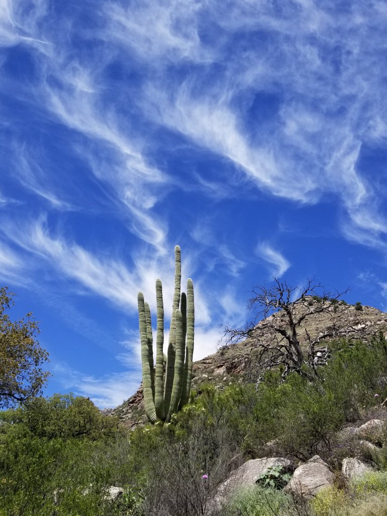 From the saddle, I dropped in elevation, weaving through the contours of each hillside, eventually dropping down into Sabino Canyon. There are a couple of trails that lead to other trail heads in this area, but I didn’t realize this until I started seeing day hikers. Unexpectedly I saw a total of six people in this area, but I had thought I was in the middle of nowhere. Ha ha, this happens often!