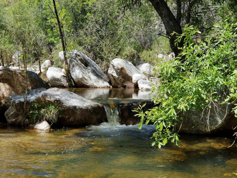 By mid day, I made it to Hutch’s pool just north of Sabino Canyon. Here, the trail begins to meander along the creek before climbing up and away from it. If there were ever a great opportunity to fully immerse oneself in a swimming hole on the AZT, this was it.