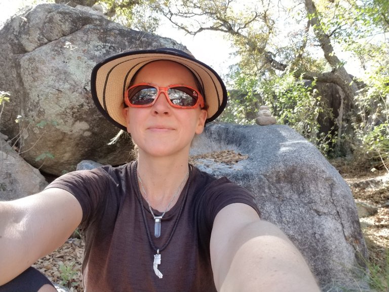 At lunch, I wasn’t all that hungry because I hadn’t really exerted myself much at this point in the day. I sat in the shade killing time, I looked over all the notes in Guthook to see what I could find out about the water on the climb up, and places to possibly camp. Then, I tried to meditate, but honestly the bugs were bad. They kept distracting me, there were mosquitos landing in my ear holes. Annoying. Not relaxing, hah!