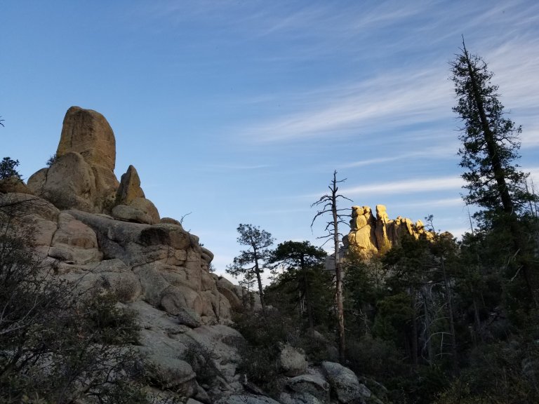 There was a reward though. As I neared the 7,000 ft elevation, the terrain definitely switched to Sierra-esque granite boulders and pine trees now dominated the landscape. Suddenly there were beautiful sculpture-like rock formations and the sound of wind wrapping around slim pine needles overtaking my senses. I stopped at a beautiful Ponderosa….I glossed my hands over the rough puzzle-like bark, I wrapped my arms aroud her, hugged her, pressed my cheek against her bark and felt very at home, very nourished.