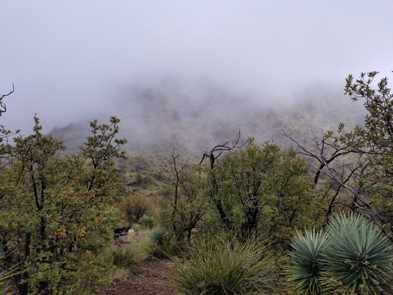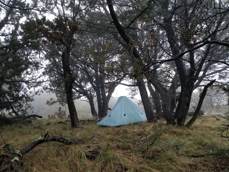 I sat in my tent debating what to do while sipping cold coffee and eating granola. I waited and waited to see if the rain was going to stop, noting it was super foggy all around, I was literally in a cloud. What to do?