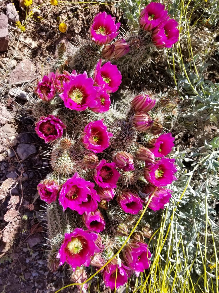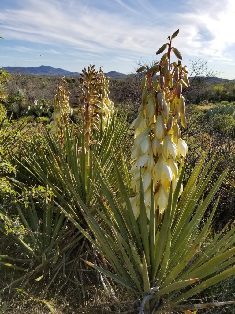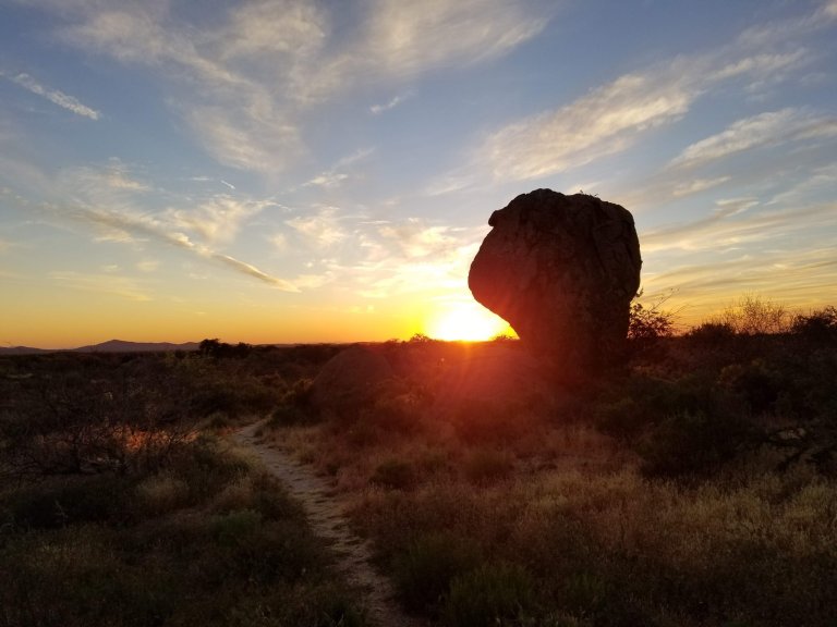 The trail travelled through a beautiful landscape dotted with hundreds of flowering Yucca’s and the occasional cluster of giant oddly shaped boulders and cacti with Mickey Mouse faces.