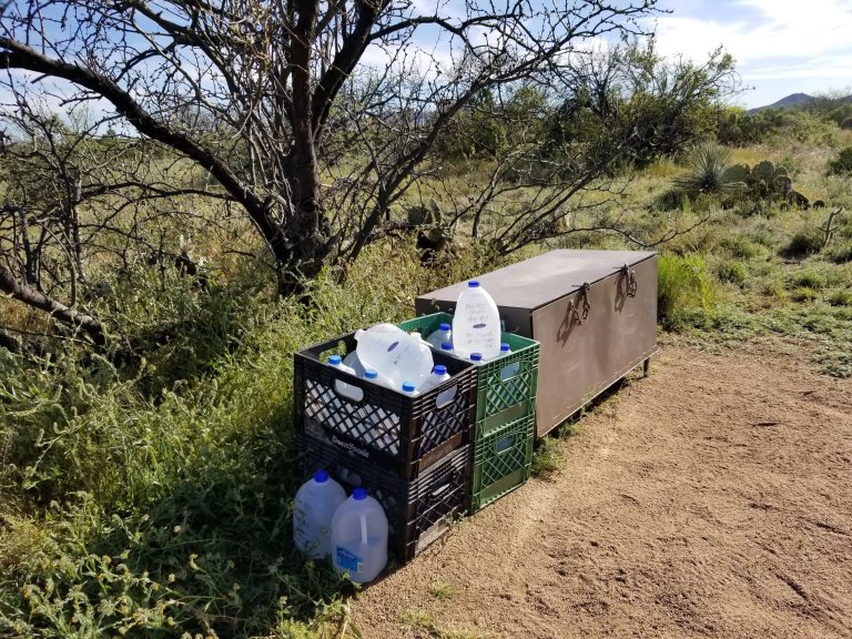 Finally reaching the top of the hill the trail leveled out. Which was a big relief. Shortly, among the thick dry grasses, I met a SOBO hiker named Tom, hailing from England. He was hiking the Grand Enchantmnt Trail (GET) which is another route I am interested in, so I picked his brain a little. While we chatted he told me that he had an encounter with three mountain lions the previous night. Three. That was one thing, and the other was that he saw my name on some water bottles and a bunch of food in one of the caches North of here. Sounds like trail magic to me! I walked away from Tom feeling super excited about the possibility of food left for me by a trail angel!