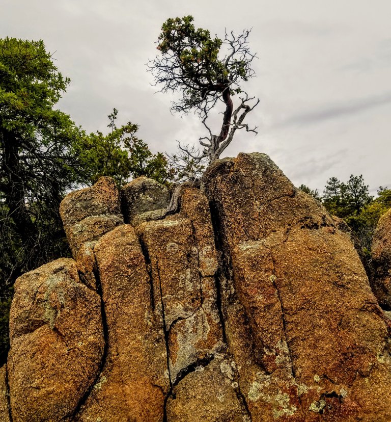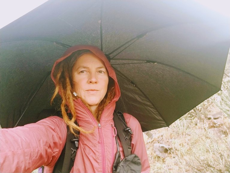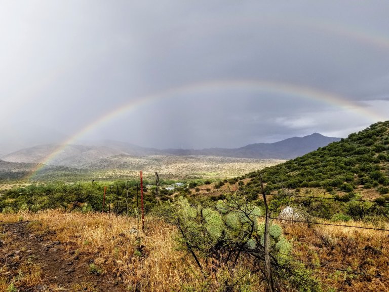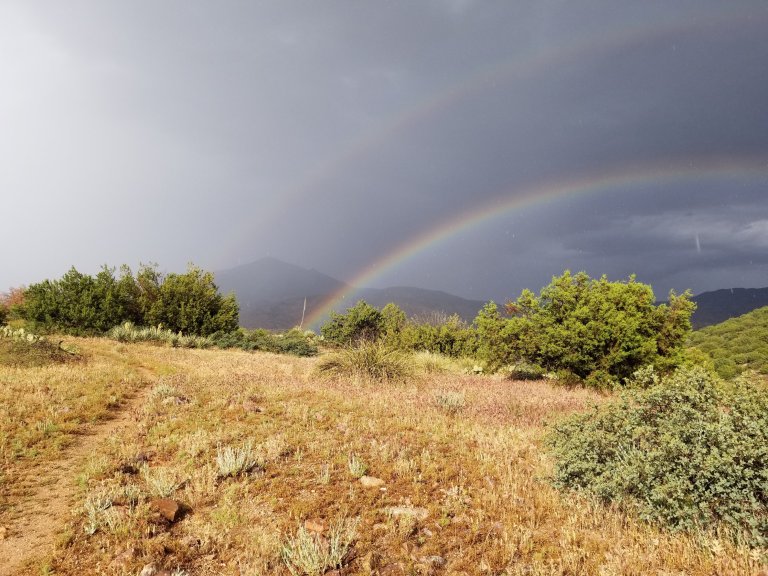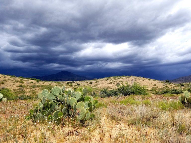 Things change so quickly out here in this desert. There’s sun in this rain…The vegetation all along the trail was now a mixture of pastel and earthy colored grasses, little wild flowers and juicy cacti lining the path. There were also Manzanita and Alligaitor Juniper, one of my new favorite trees.