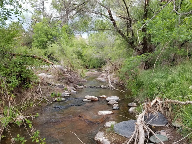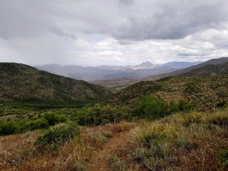 Continuing to the North, into the gray-blue smash of cloud and rain, down, down, down to Sycamore Creek I went. I’d determined this would make a perfect place to stop for lunch, giving myself 8.6 miles to tackle now.
