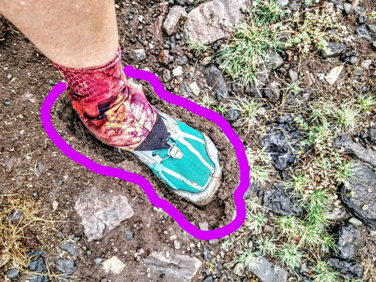 This all couldn’t have come at a better time, as I walked now into increasingly slick thick mud, slowing me to a snail’s pace. But I have time now!