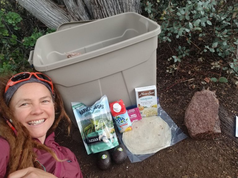 This thoughtful Trail Angel had packed me some Snap Pea Crisps, two (yes two!) perfect avocados, coconut water, a couscous dinner and some tortillas.