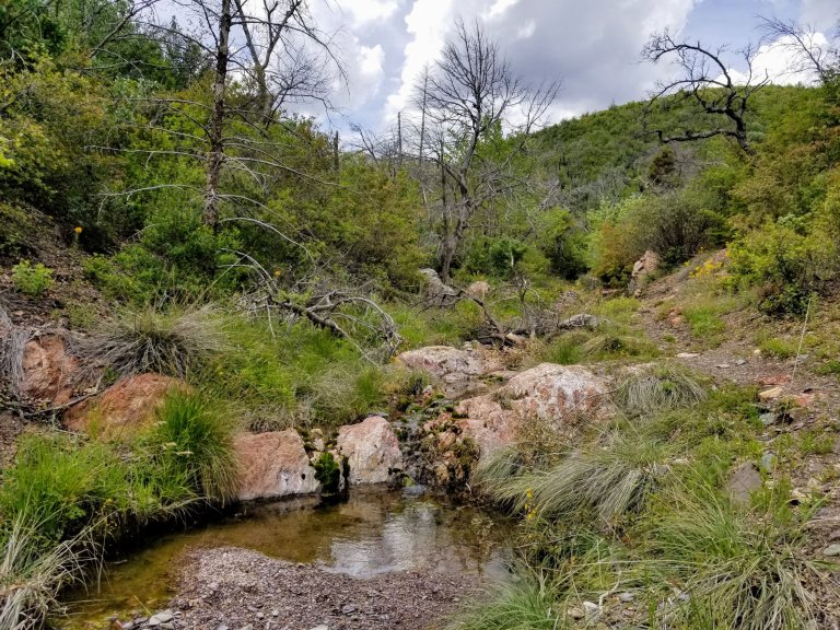 I am hungry earlier than usual, and land myself a perfect place to stop and take a break beside a beautiful creek near Cornucopia Spring Trail Junction.