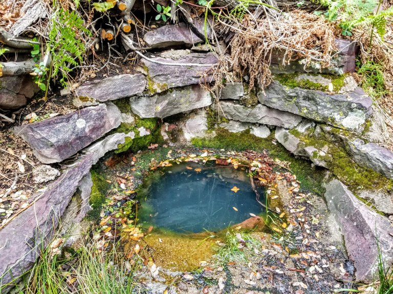 I reach the Bear Spring turn off at 6:15 and have a quarter mile down a spur trail to get to the water. The spring turns out to be a small hole in the ground with milky looking water. Someone had built a little bowl with stone to capture the water coming straight up from the Earth.
