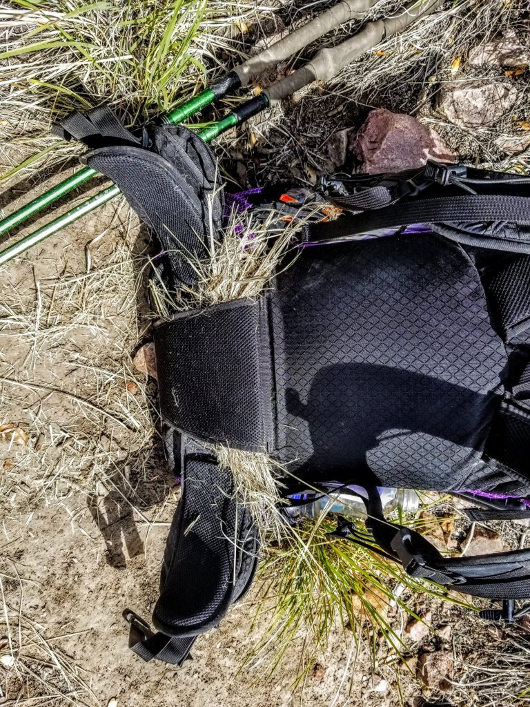 I shove a bunch of dried grass into the seam of my hip belt where it meets the body of my pack, like I’m stuffing a scarecrow for halloween. There, now stop squeaking please! I am irritable, and my own irritability irritates me.