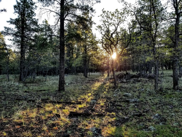 The dirt roads are soon replaced by lovely single track and the open mesa eventually gives way to a Ponderosa forest once again. The forest embraces me and I realize instantly how very much I love trees. It’s very quiet here in this forest. My footfalls are buffered by the soft, dried pine needles. In this softness, I feel so at peace. It’s just me and the trees now. The wind blows way up above me in the high canopy now, giving my cheeks a break. I walk in a daze embracing this softness as the loveliness of what I’m doing overtakes my conscious awareness, shifting me into a subtle trance.
