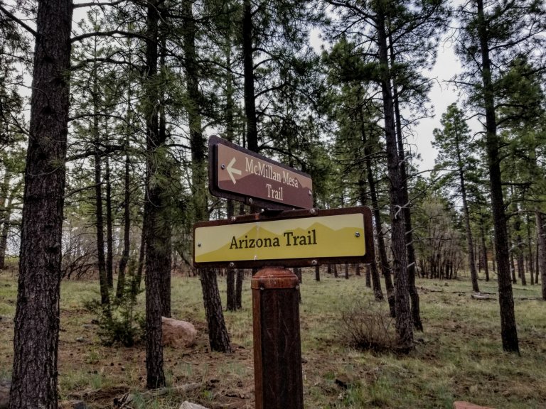 I figure I can probably just hike a few miles and then stealth camp on the margins of civilization, so I attempt leaving Flagstaff on the urban route/FUTS which takes me up through a place called Buffalo Park. Studying the maps and reading the trail updates on the AZTA website, I immediately see there are a bunch of trail closures and re-routes in this area. It is not clear to me at all where I may be able to camp or find water afterall. While standing at the base of McMillan Mesa, staring at the maps on my phone, magically and in perfect synchronicity, comes a message from Katy-Did & Eagle Eye.
