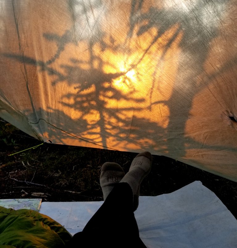 I tucked into bed, with my feet raised off the ground, trying not to let them touch the inside of my condensation ladden tarp. Laying down felt amazing and I really wanted to give in to sleep at this point. I had one last thought before I shifted my consciousness to dreamtime, was that given how the weather had changed, I was definitely not in favor of hiking deeper into a remote wilderness.