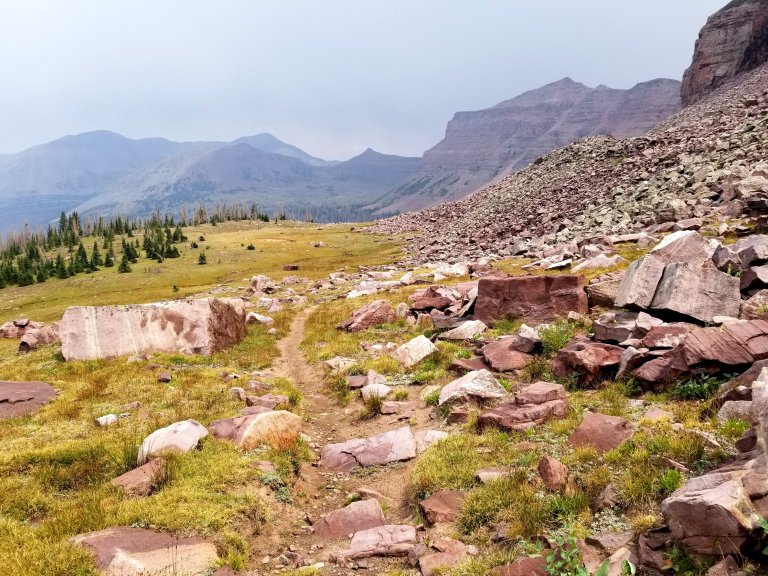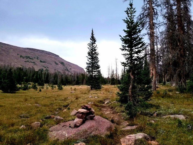 This happend twice, and the second time it was at treeline just before the pass. I made mental notes of these patterns through the day, as this is my first time hiking the Uintas, thus I am not familiar with what the weather does. From what I researched, I learned that afternoon thunderstorms are pretty predictable. The clouds stack up, drop rain, then dissipate, so I expected to have a point in every day where I waited this out before a pass.