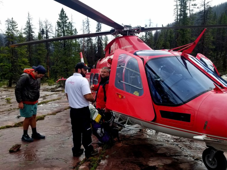 The helicopter pilot checks in with us and is a little hesitant to add me in to the plan, or so it seems, as the original SOS call was for one person, so I am an add on for sure. He askes me “do you need out?” to which I say “well, yes, unless you can tell me it’s safe to hike out.” His eyebrows raise and he shakes his head.