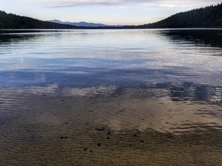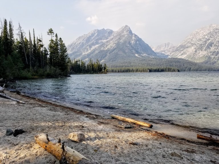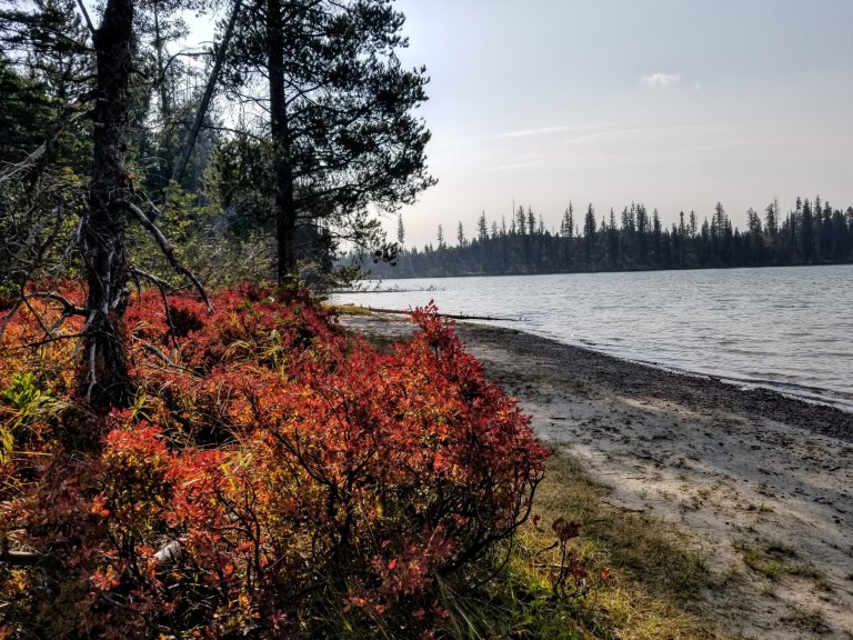 With hot coffee in hand, I meander to the beach and find myself gazing over the choppy waters to the peaks beyond. They are enshrouded in smoke and haze and there seems to be a fog bank of some kind that has settled in between the large gaps in the rocks. The scene up there looks so different compared to yesterday, and I feel really grateful now that my hike down Paintbrush Canyon was so crystal clear.