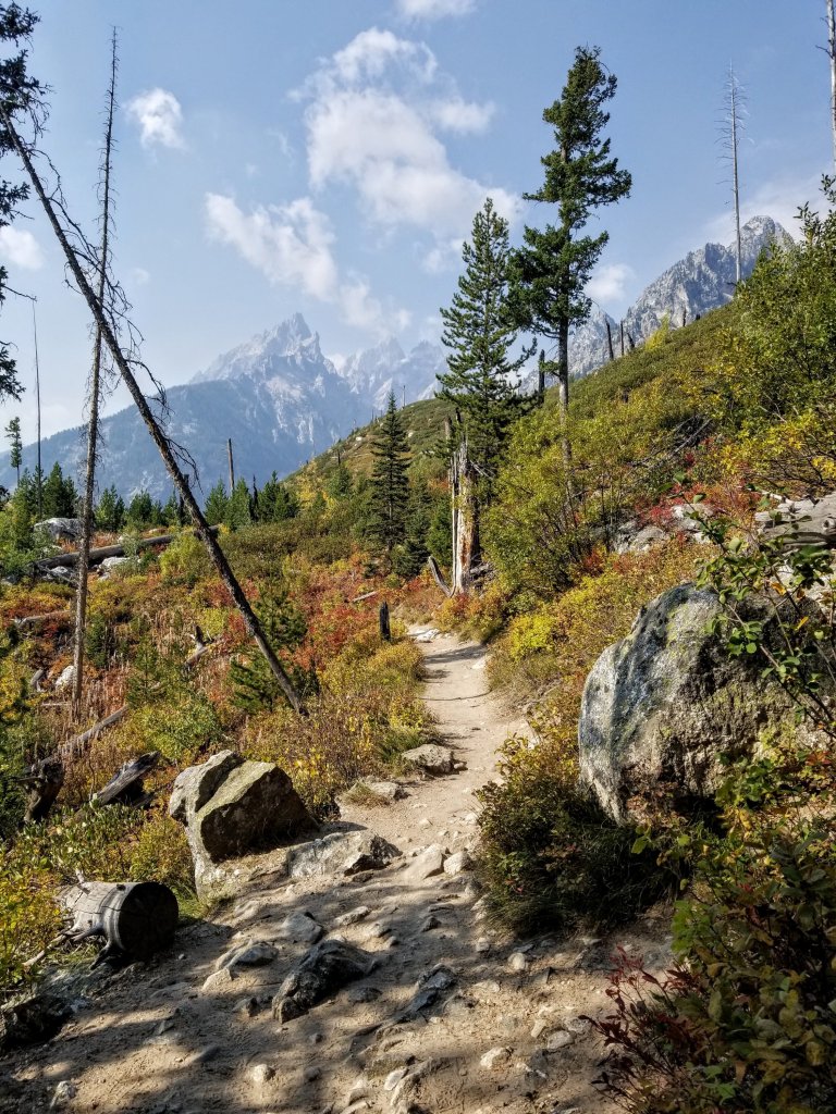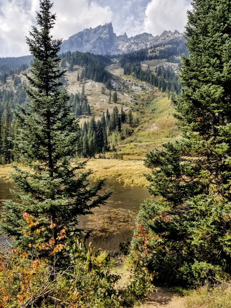 After Taggart Lake there is a 4 mile stretch of cruisy trail through open forests and grassy meadows. If I could sleep walk through this, I would. I strugle with my mind feeling numb from lack of stimulation as there is nothing distinctive to keep my mind occupied, nor is there any technical terrain, no big climbs and pretty smooth, easy trail tread. Honestly, it’s a dreamy trail to walk on, but I feel so sleepy it is difficult to stay alert.