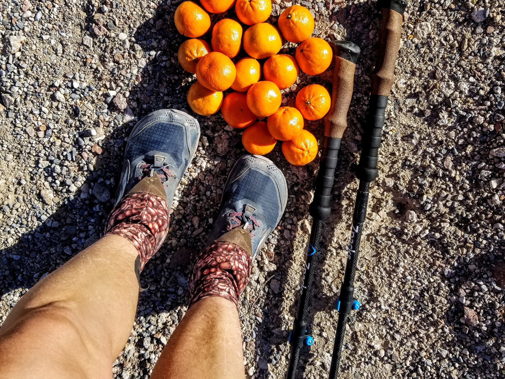 At first I am not sure what to make of this. I instinctively collect all the tangerines from the road and place them off to the side in a pile. I consider taking about 4 of them and leaving the rest for someone else. Then I realize this is my liquid gold. This is my trail magic. The trail sent me tangerines!