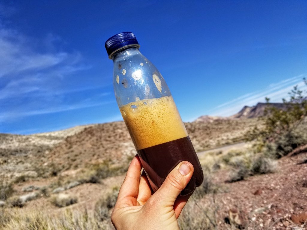 I immediately finish the remaining swigs of my rationed water till it’s dry. Then I take a seat near a faint swatch of shade and start eating more tangerines. I have some granola too, and then indulge in 4oz of instant coffee, strong and dark like a European espresso. It tastes amazing too. Everything does. I mix electrolytes and fill my bottles to the brim, then stash 2 liters of water inside my pack. Then I study my maps again. How far is it to my next water cache now?