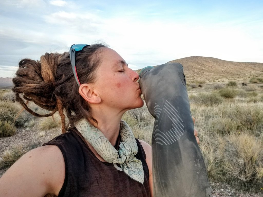 By 6:20pm I’m at my cache and I’ve hiked 22 miles. I scout around to find the shrub I buried my water under and start digging. Beneath the sand, I feel the rippling surface of my hydrapack, inside of which my water is perfectly intact. Oh my goodness, thank you, thank you!