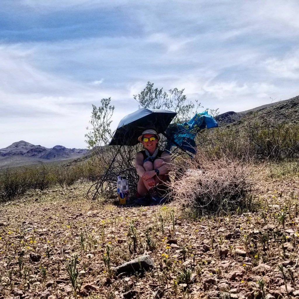 It’s 1:00pm, I have passed the edge of said monolith. It is hot hot hot and I need shade but there is none to be had. I’ve been slowly nursing my electrolytes and eating ricola throat drops which are amazing in this scenario. I force myself to pee, it’s been several hours. My urine is a dark yellow and scanty, but it’s something. I drink more electrolytes wondering will I ever get hydrated again?