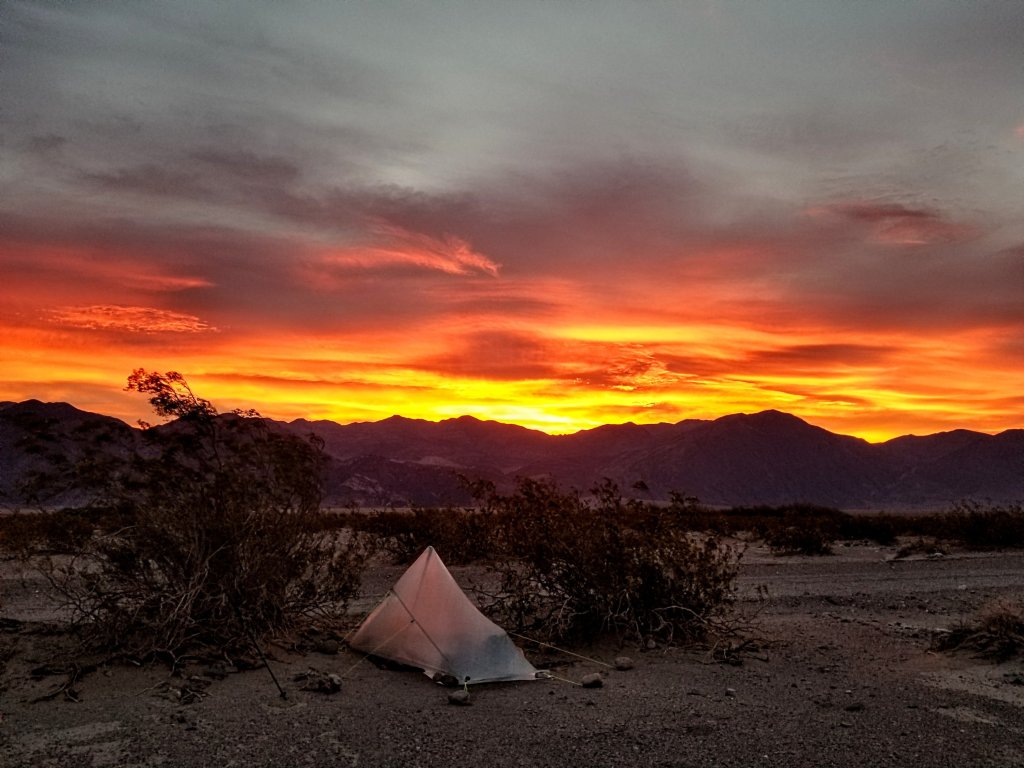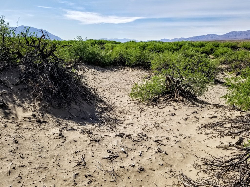 It’s an adventure getting my tent unpitched without loosing it but I manage to bring in all the lines and loosely fold it up good enough. When I’m ready to walk its 6:44am, my first objective is to get to Shorty’s Well where my final water cache sits (hopefully) under the sand. It’s ~ 8 miles of easy dirt road walking to get there. When I am moving, I feel surprisingly good despite how badly my ankle ached last night. Now, I have zero complaints about cruising on flat, fast turf. My mind reflects back to last night, its like a blur crossing the salt pan in the dark. Did I really do that? And soon, I’m going to cross it again, just in a slightly different place. This will put me at the Trailhead for Badwater Basin, where I will end this first section of the DVT.