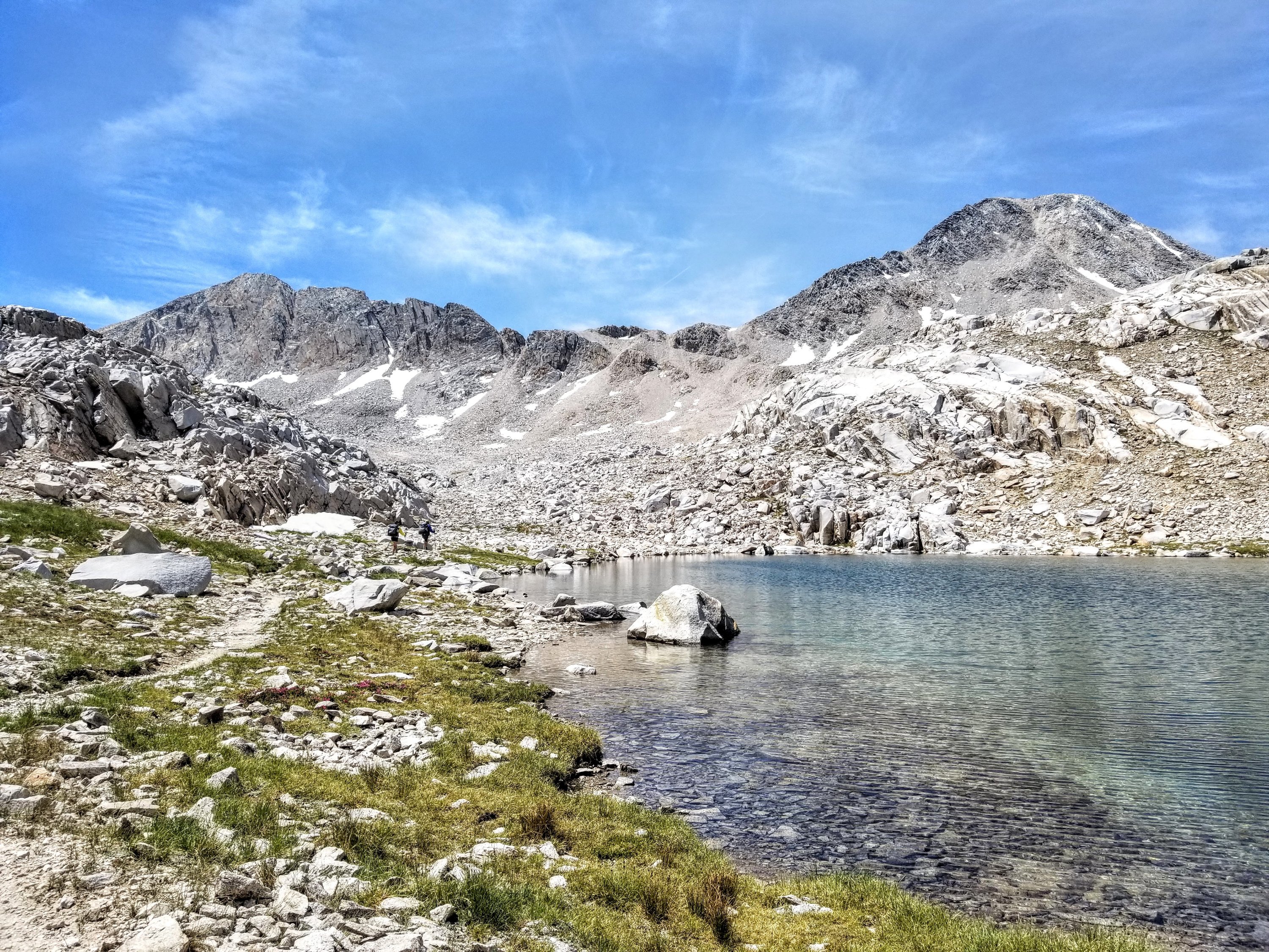 We had anticipated finding a campsite above the South end of Wanda Lake and when we arrive, we see there are people in most every possible spot. Mosquitoes and crowds, two reasons I usually avoid the Sierras in July. I’m sure we would have had first pick at campsites in Ionian Basin, haha, but I am not complaining, we’ll find something great I’m sure. I think we are all starting to feel the effects of another long day as we are are all quite hungry and a bit tired. It’s taking a lot of effort to find camping here, we are all being indecisive too and we spend the better part of an hour in search of a place to call home for the night.