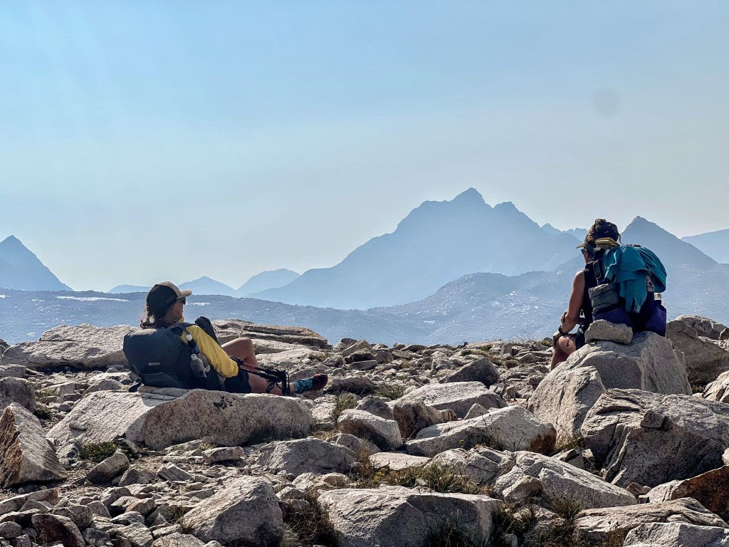 This is a good opportunity to look over the route through Ionian Basin. With how Christy is feeling and now given this smoke, we start to question whether it’s a good idea to push this itinerary. Ionian is the most austere and tedious section of our route. Michelle and I are both also rationing our food and if we go into Ionian Basin, we will have to spend an extra night. This sort of feels like two strikes. It is starting to seem like the writing might be on the wall here.