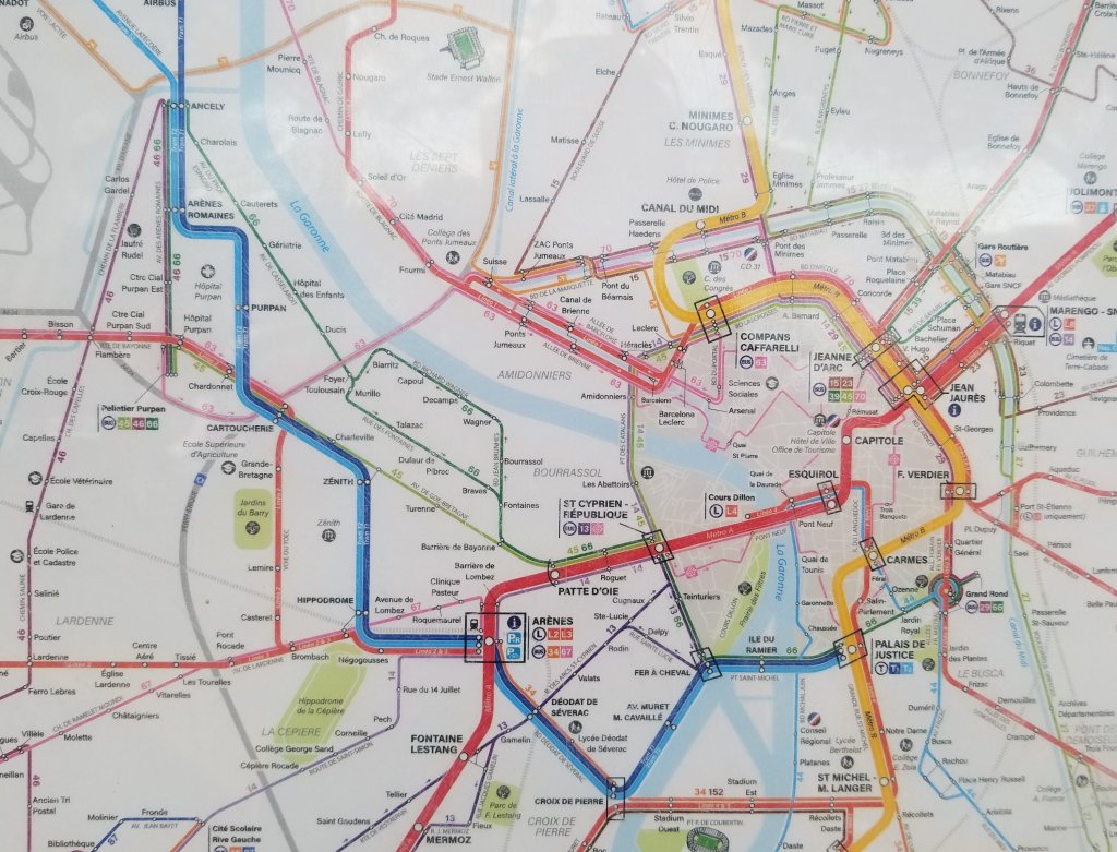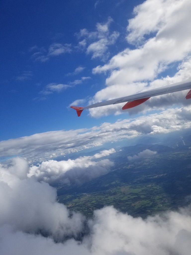 It’s only one hour by air and soon we are landing in Toulouse. By my good fortune, they open the door at the back of the plane and I am of the first 10 passengers to disembark. Redemtion! I accidentally walk past the baggage claims because they are all dark and quiet. I thought maybe there was another one further away, but soon I am at the exit for the airport at a Starbucks of all places. I backtrack to the first bag claim and wait just a few minutes. My bag is one of the first ones to come out, it looks just fine, and that makes me feel a huge sense of relief and freedom. I am free to roam! Whoo hoo!