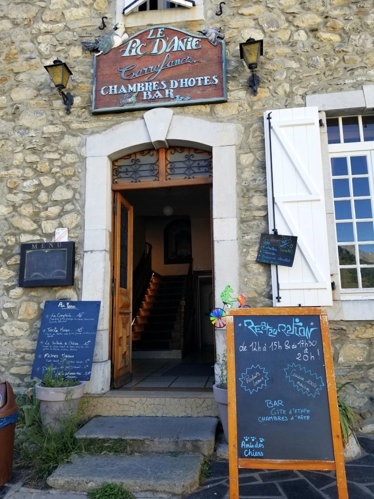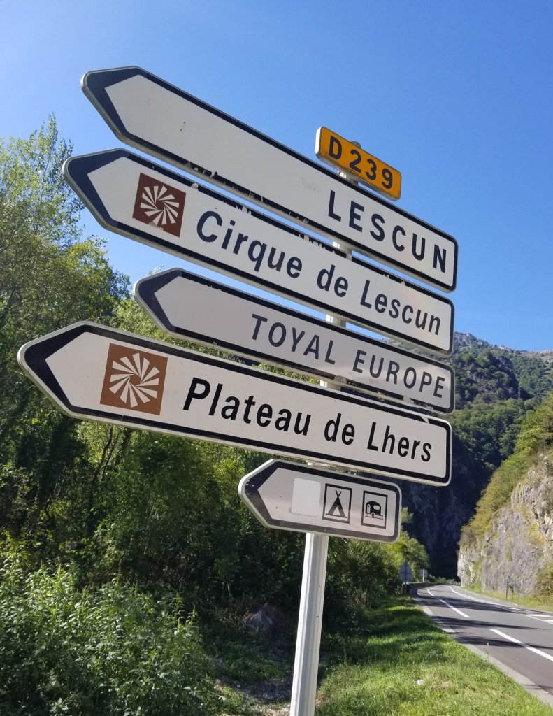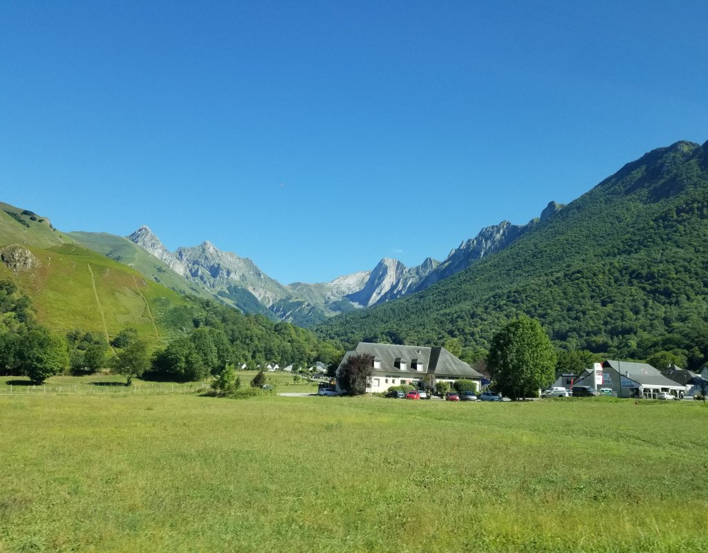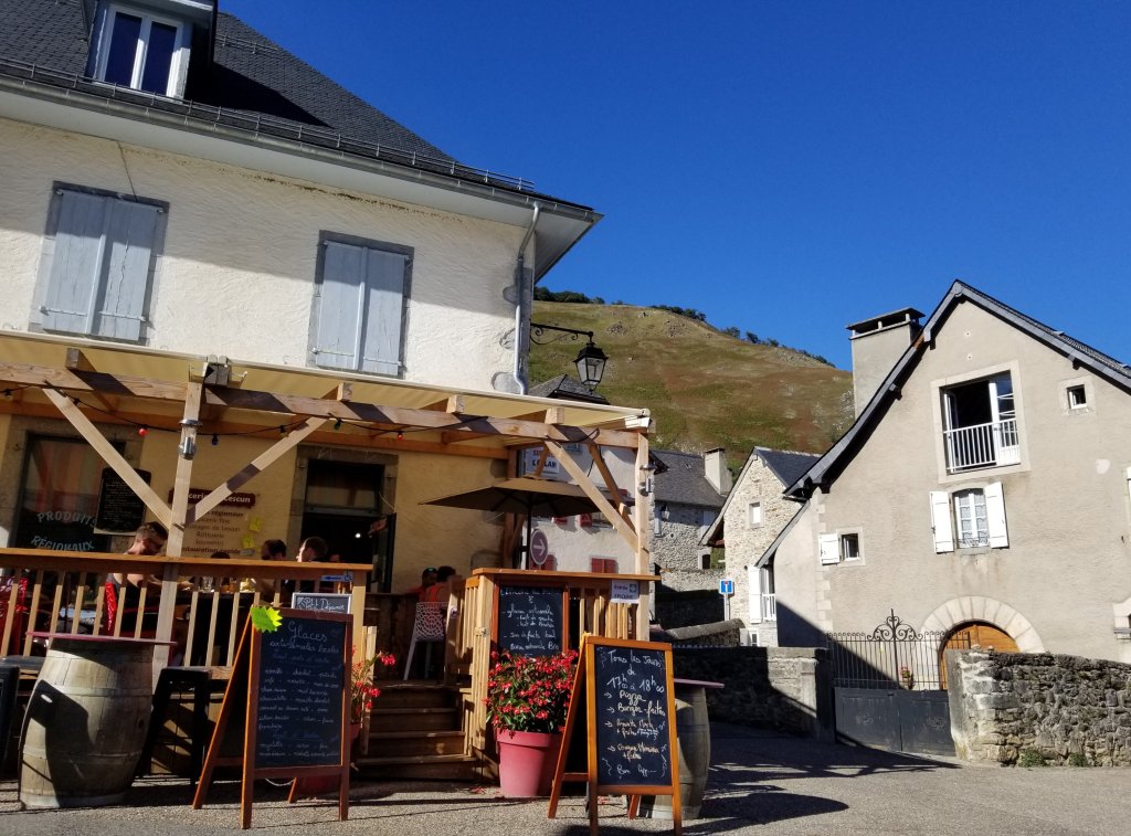 When I get to the stop for Pont du Lescun there is another woman who also gets off. I watch to see what she is doing, does she look like a hiker? Despite her rucksack she is wearing skinny jeans and leather fashion boots. I think she may be getting a ride to Lescun. It is a 1,500 ft climb over 3 miles from here and I have been prepared to walk since the get go. But then I see her sticking her thumb out at the first car that drives by. I quickly follow suit and it’s a miss. We exchange smiles and begin to talk. This is my first oportunity to really say to someone “je ne parle pas bien francais” and then she starts speaking broken English, but it’s better than my French. Turns out she lives in Paris but she is from Lescun and works at the Gite. The third car passing by stops for us. It’s a group of three men from Catalonia, Spain and they speak mostly Catalan and a little Spanish.