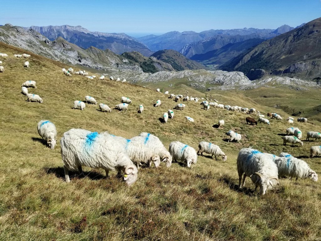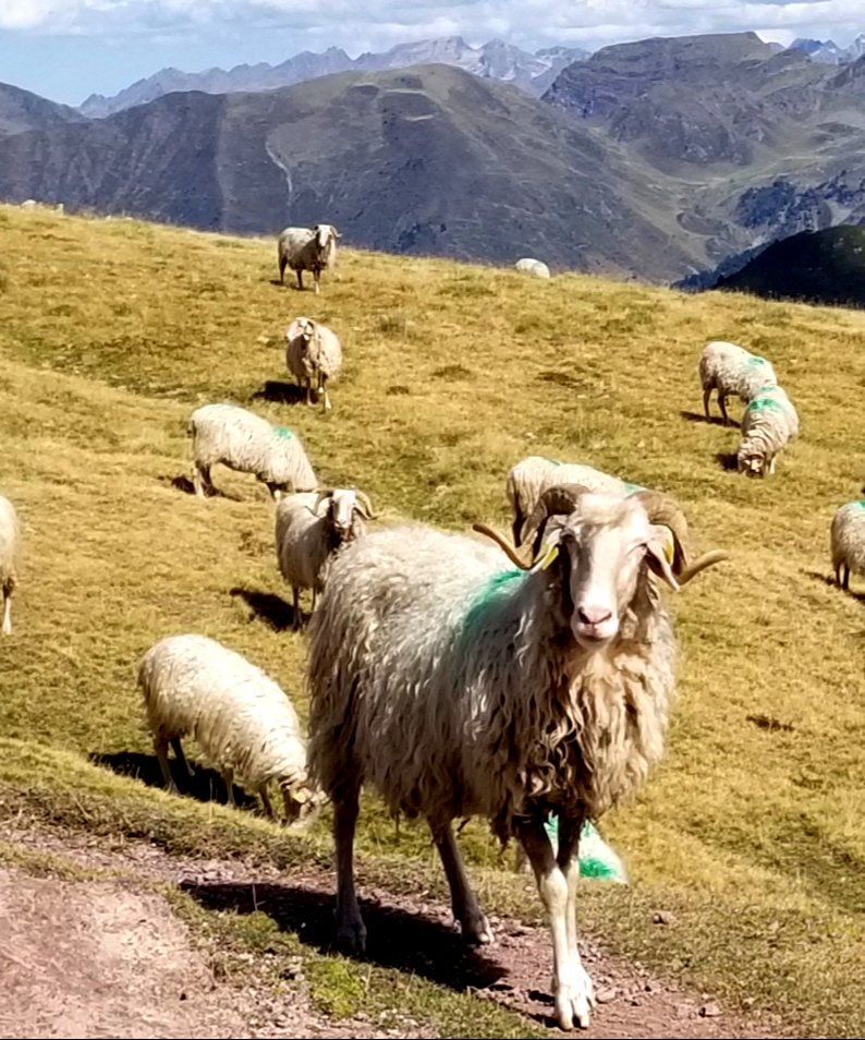 Shortly, I pass by a shepherds hut and am relieved when the dog does not charge me. I climb further up and away from the hut to take my first snack break. I have views of the valley below and the sounds of clanking sheep bells echoes within the wide basin. I watch two hawks soaring in circles and a few people climb on by me saying bonjour.