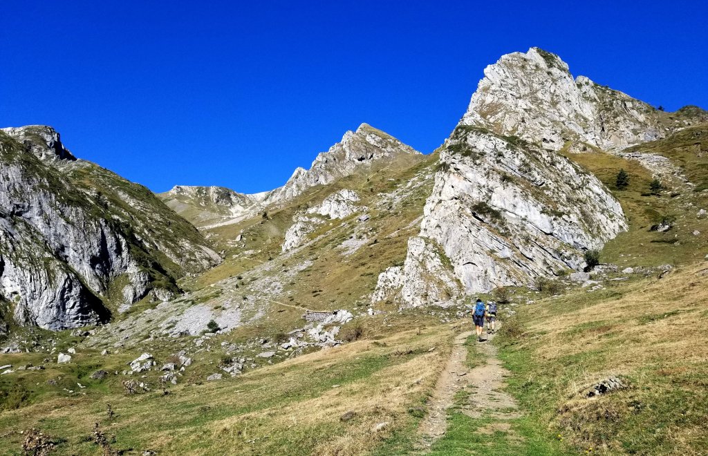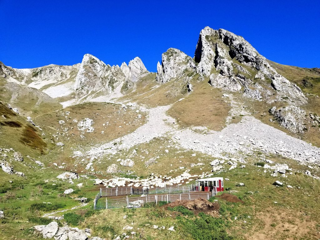 There are no clouds in the sky and the morning temp is 52F, today it’s supposed to get up to 87F (31C) in Lescun, so it’s going to be a hot first day but at higher altitudes should be pleasant. As I’m boiling water for coffee a group of ten people walk nearby as there is s trail junction very close to my camp. They wave at me and say things in French I don’t quite understand except that one woman asks me to make them coffee. I gesture like I’m going to make ten coffees and we all have a laugh. They don’t seem to mind my being here at this late hour so I feel a little relieved.