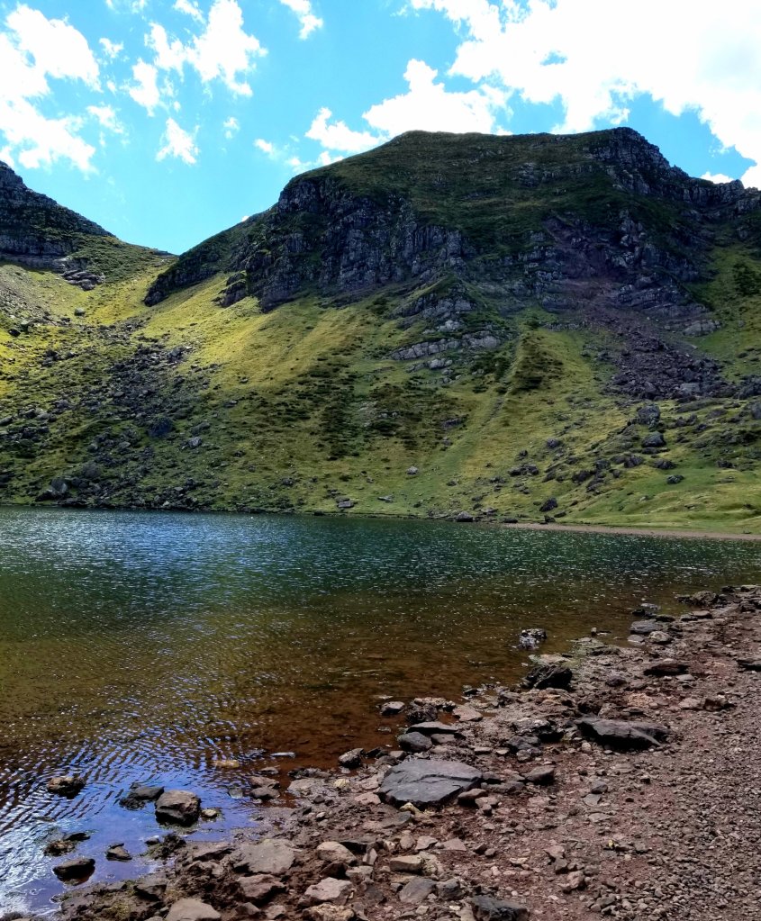 Nevertheless the views are stunning and I get a close up view of a mama horse and her suckling yearling. Sans water, I hike back up the steep slope to the trail and continue on. It’s another hour to the Lac D’Arlet where I will take my lunch so I set my mind for water in an hour and nurse the little bit I’ve got left. I got this.