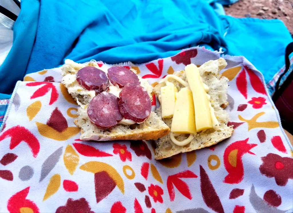 I make it to Lac D’Arlet at 2:00pm, there are a few groups hanging out by the shore and I pick a spot for myelf. The water is decent, and I get right to collecting, filtering and drinking. My water filter is working really slow, it’s annoying because I’ve only used it for one month of backpacking in the Sierras. I clean it often an it’s still way slow, so I’m not so sure the Kathadyn BeFree is something I am ready to endorse. This slow filtration does not help my patience but finally I have clean water and I guzzle a half liter on the spot. Now, it’s time to eat! Yay!