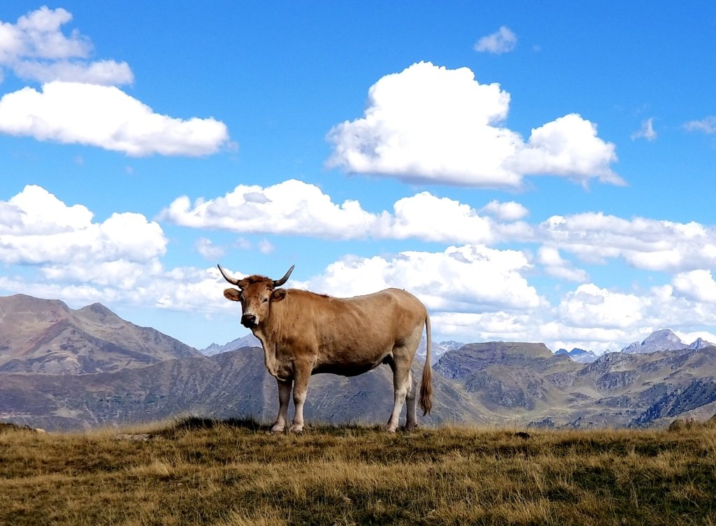 The morning air moving down the valley is quite balmy and pockets of warm air brush by my skin from time to time. It’s warm for sure but not yet hot and I feel like once I gain a little more altitude it will be quite a nice day to hike. The trail follows a dirt track for a few miles, climbing up into the sun and I pass a few groups of grazing cows along the way and then suddenly there is a decomposing cow corpse and I’m not sure how I feel about this. I stare at it’s gruesomeness, it’s tongue sticking out, the way the hide hangs on the bones and the flies swarming around. Death is a fact of life, but I feel bad for this cow. I wonder what happened and why nobody gets rid of the body?
