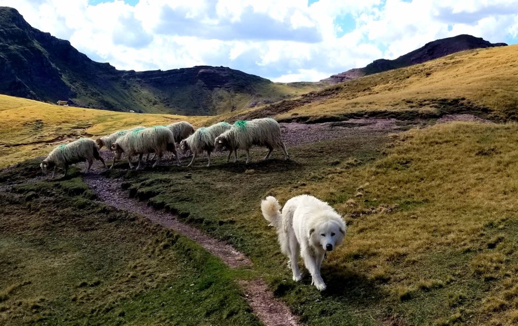 My thoughts drift to asking myself “What makes beauty, what makes joy?” It must originate in the senses I suppose. I am experiencing feelings of great joy and bliss out here this afternoon. I feel good not having to climb anymore, my body is fed and I have water. These all bring me joy. Then there’s the wind, sunlight, sounds of sheep bells and bahhing, the rich colors enhanced by the light and shadow, a soft breeze, the panoramic scale of mountains forever in the distance, the animals with their textures, so many textures and the sounds of hooves stomping the Earth. All of this brings me joy, all of this makes beauty.